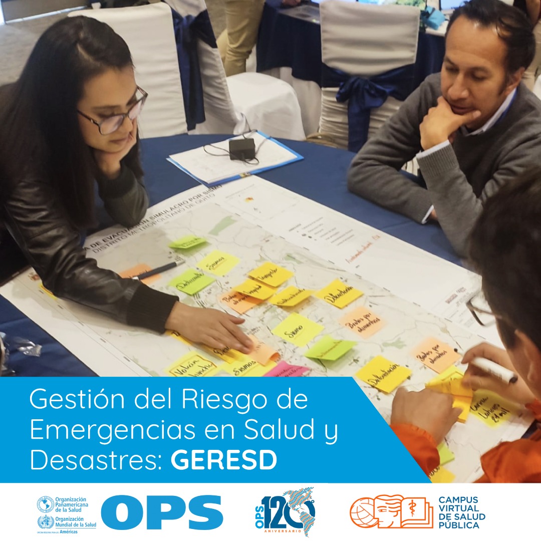 Desde la implementación del Marco de Respuesta Multiamenaza en la región de las Américas, la OPS identificó la necesidad de desarrollar un curso de Gestión de Riesgos ante Emergencias en Salud y Desastres (GERESD). Este curso está dirigido a las autoridades sanitarias tanto a nivel nacional como subnacional, así como al personal de coordinación y operativo del Sector de la Salud. Su objetivo principal radica en proporcionarles información y capacitación en el proceso de gestión del riesgo en situaciones de emergencias en salud y desastres.