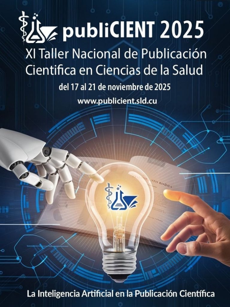 El Centro Nacional de Información de Ciencias Médicas (CNICM) tiene el gusto de invitarle a participar en el XI Taller Nacional de Publicación Científica en Ciencias de la Salud (Publicient 2025) que se realizará de forma virtual en la semana del 17 al 21 de noviembre de 2025. El tema central es: “La Inteligencia Artificial en la Publicación Científica”, pero también habrá debates sobre Ciencia Abierta, Visibilidad y Posicionamiento de Ciencia, Producción Científica, Revisión por pares, y otros temas afines.