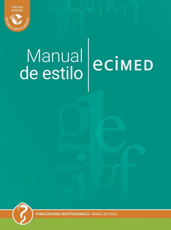 La Editorial Ciencias Médicas presenta el Manual de estilo | eciMED, obra de referencia única en el Sistema Nacional de Salud, tiene el propósito de ofrecer herramientas que contribuyan a obtener un grado óptimo de orden en la gestión editorial de libros y revistas de Ecimed, y a la vez servir de guía para todos los actores de la comunicación científica, en especial para los profesionales que se dedican a la edición del texto científico en el Sistema Nacional de Información Científica y Técnica de la Salud. Este libro apunta a elevar la calidad editorial, a tono con la aspiración de aumentar la visibilidad de la ciencia biomédica cubana y satisfacer los más altos estándares internacionales de publicación.